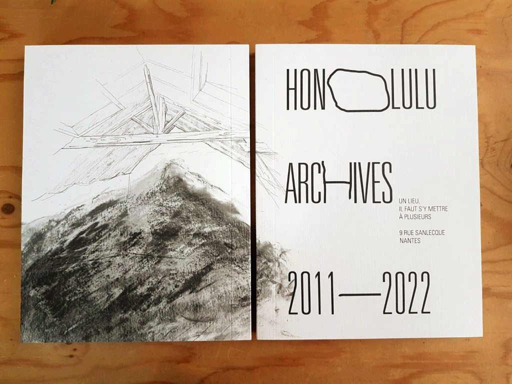 Le dessin se trouve sur la couverture de l’édition « HONOLULU ARCHIVES 2011-2022 », publiée en mars 2023 par ORO – HONOLULU sous la direction éditoriale de Barbara Coffy (maison trouble) en collaboration avec Fabienne Compet et Loïc Touzé.